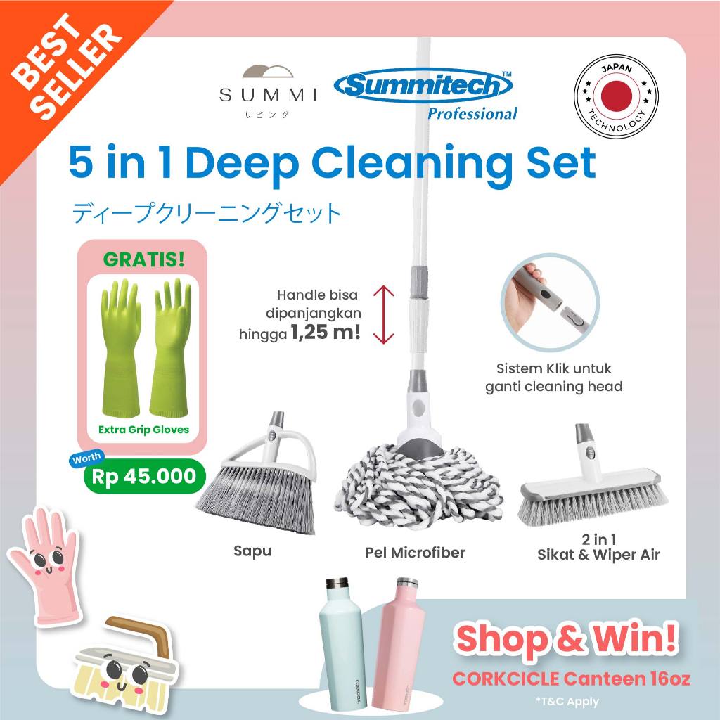 Summi Home 5 in 1 Deep Cleaning Set//Alat Kebersihan Sapu/Pel/Sikat Lantai SUMMI GROUP