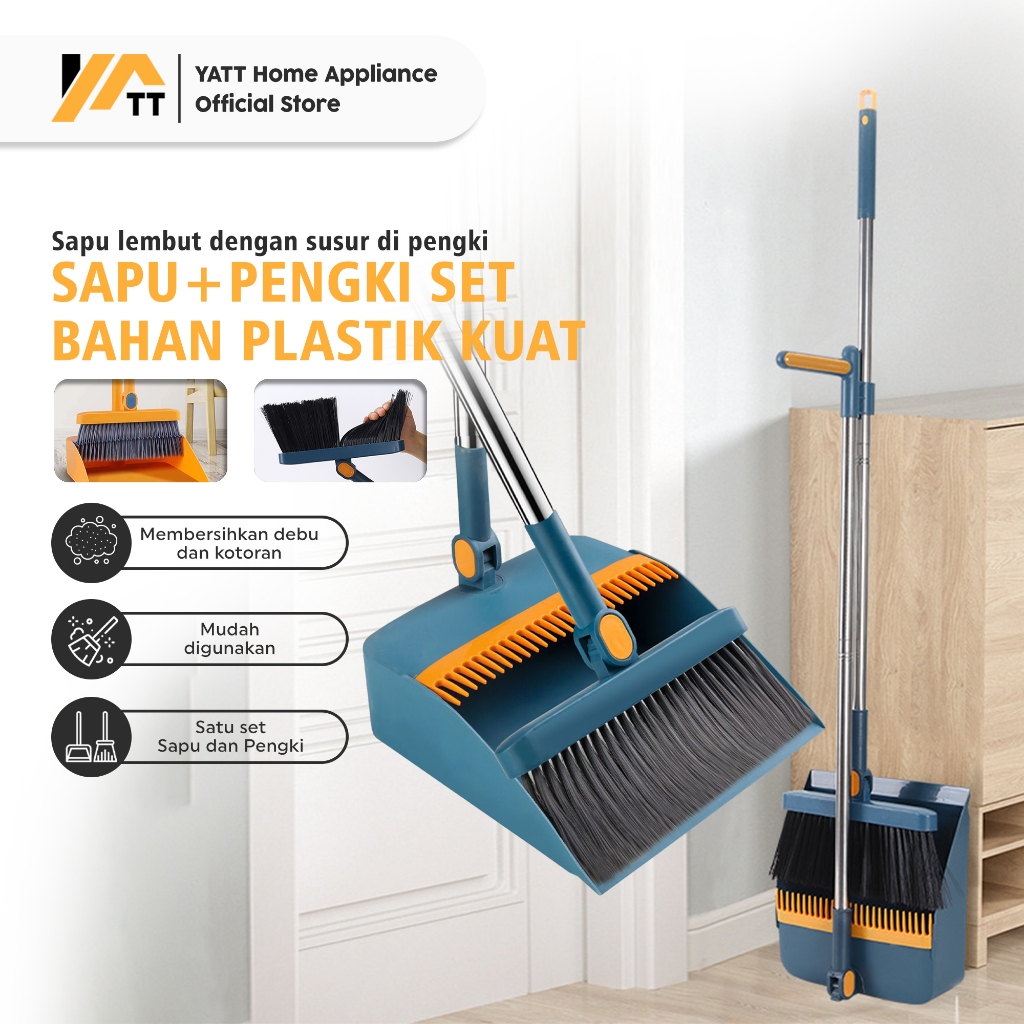 YATT 2in1 Sapu Set Pengki Lipat Pembersih Lantai Rumah Praktis & Kokoh Bulu Sapu Halus