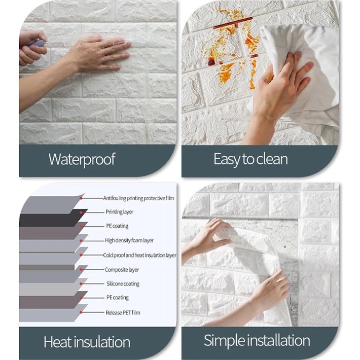 PAKET 10 PCS Wallpaper 3D Foam Paket 30 X 35 cm Motif Batu Bata Wallpaper Dinding Tembok Kamar Dekorasi Rumah