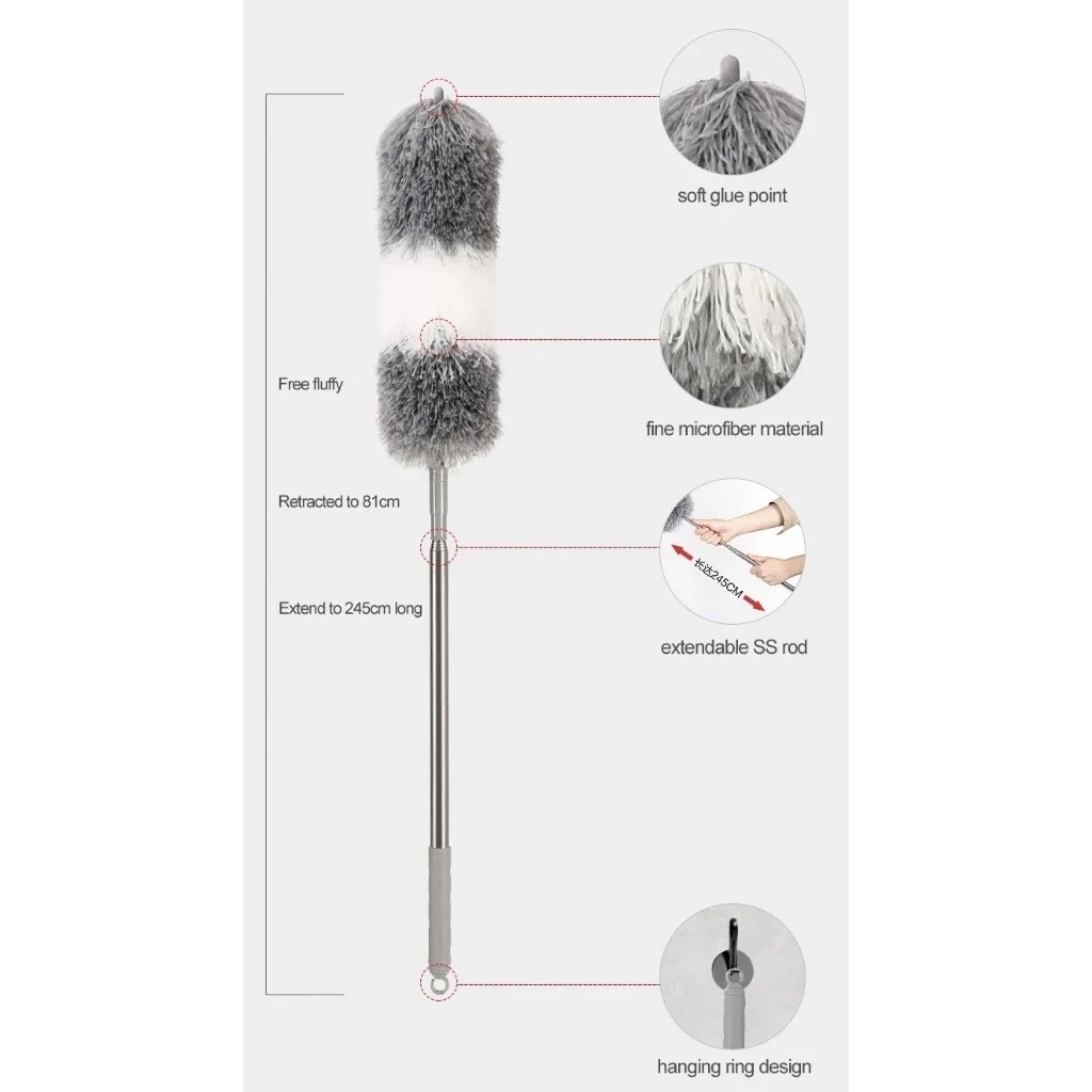 Kemoceng Microfiber Teleskopik 3 In 1 280CM Panjang Tarik Tekuk Fleksibel Teleskopik