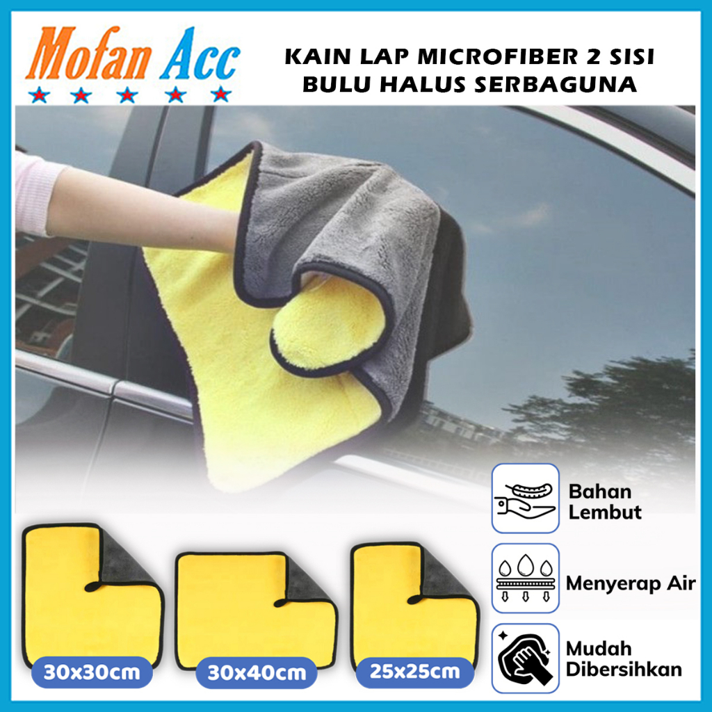 MOFAN Kain Lap Microfiber 30x40Cm 25x25cm 30x30cm / Handuk 2Sisi Tebal Pembersih Kendaraan Serbaguna