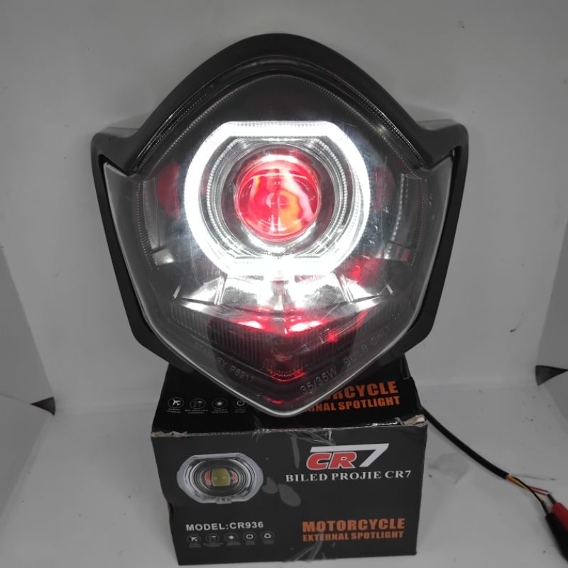 REFLETOR LAMPU DEPAN YAMAHA VIXION 2010, 2012 BILED LED 4,5INCI PNP SESUAI GAMBAR