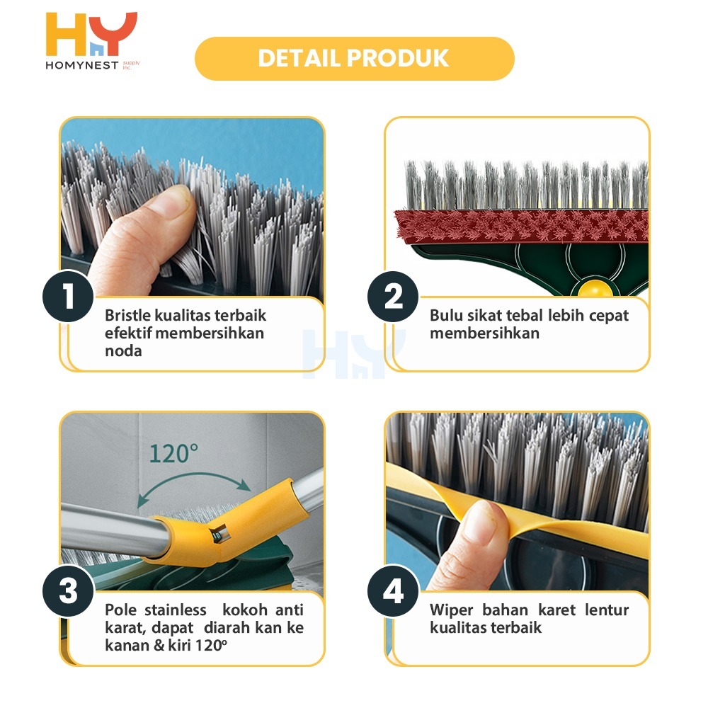 HOMYNEST Alat Pembersih Toilet Serbaguna Sikat Kamar Mandi 3in1 Multifungsi Sikat Lantai Serbaguna