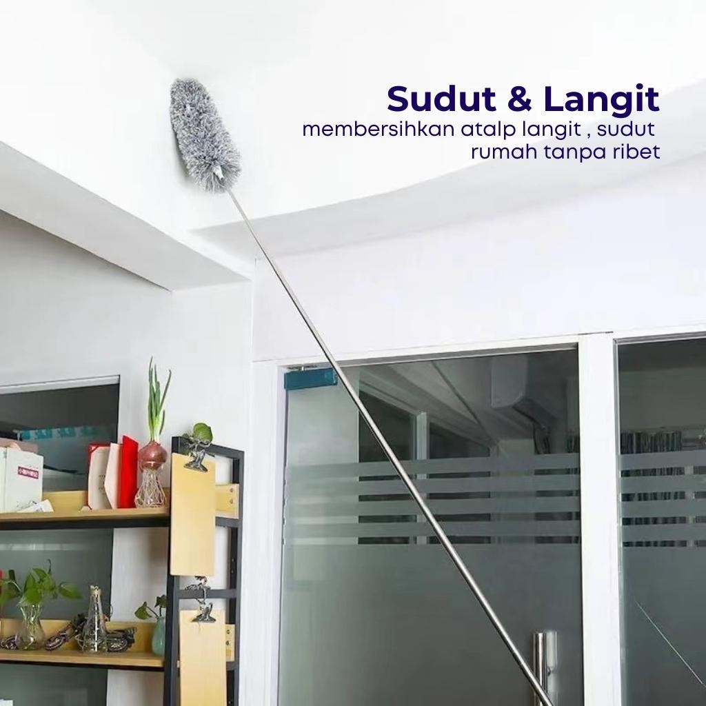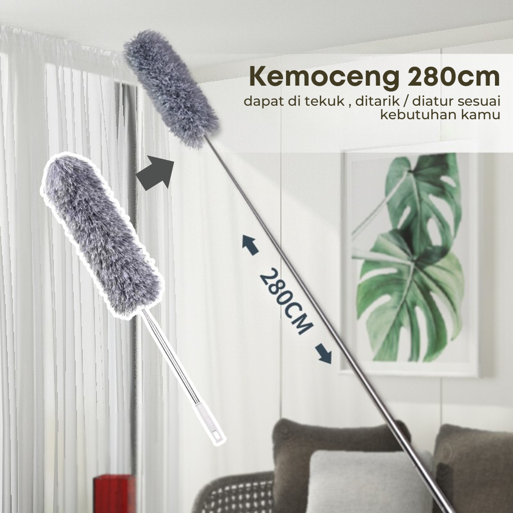 Kemoceng Microfiber 2.8m Tarik Tekuk Fleksibel Alat Tongkat Panjang Pembersih Langit Rumah
