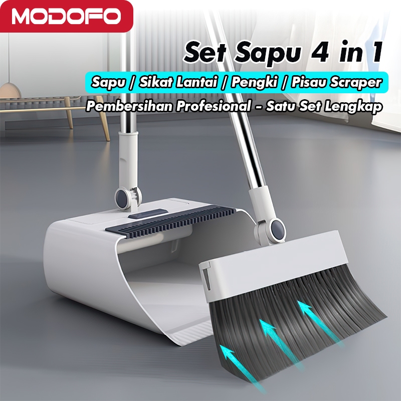 MODOFO Sapu Dan Pengki Lipat Set 4 In 1 Sapu Pembersih Lantai Dan Pengki Lipat Set Alat Pembersih Lantai