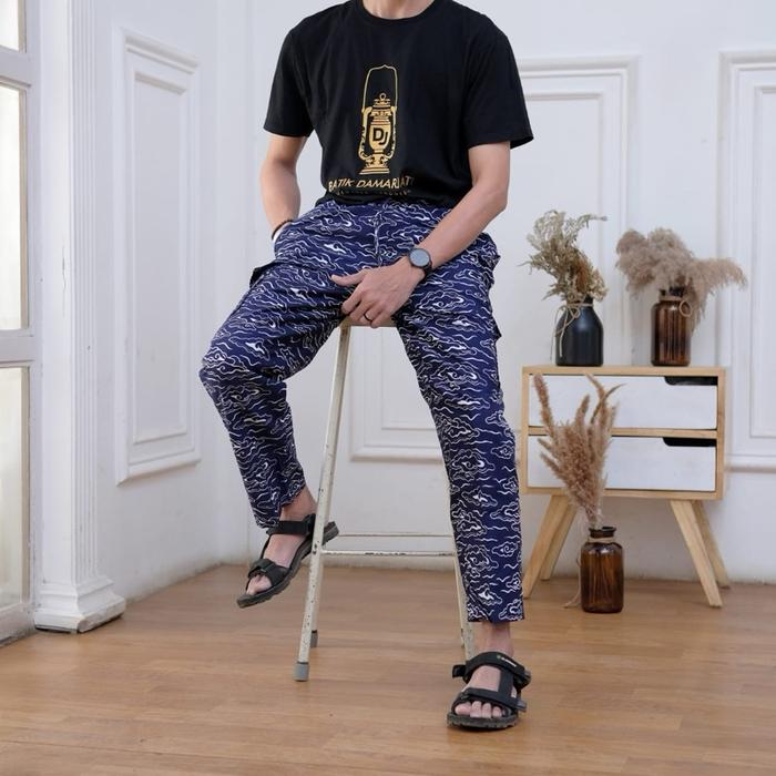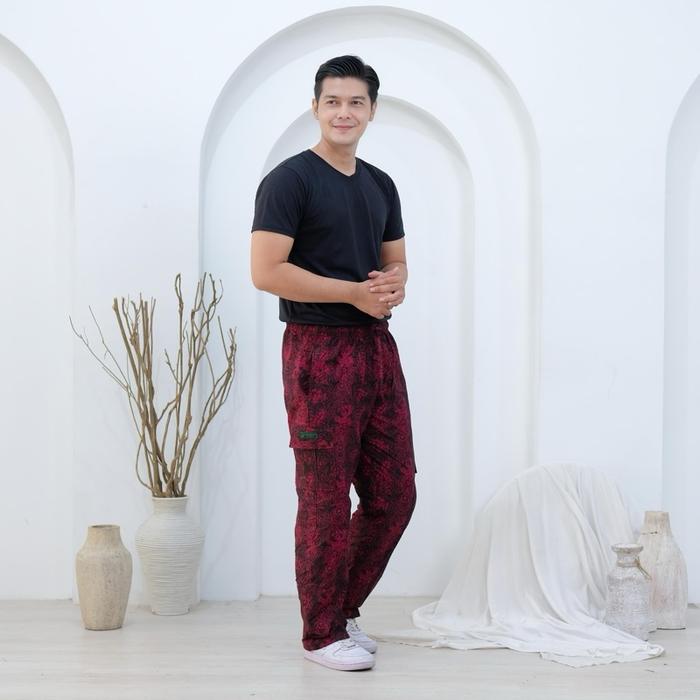 CELANA BATIK HANDMADE CAP | CELANA PANJANG BATIK | CELANA BOIM CARGO | CELANA BATIK BAHAN KATUN | CELANA BATIK PRIA | CELANA BATIK PINGGANG KARET NYAMAN LEMBUT - BURGUNDI, M ( BB 30-45 KG )