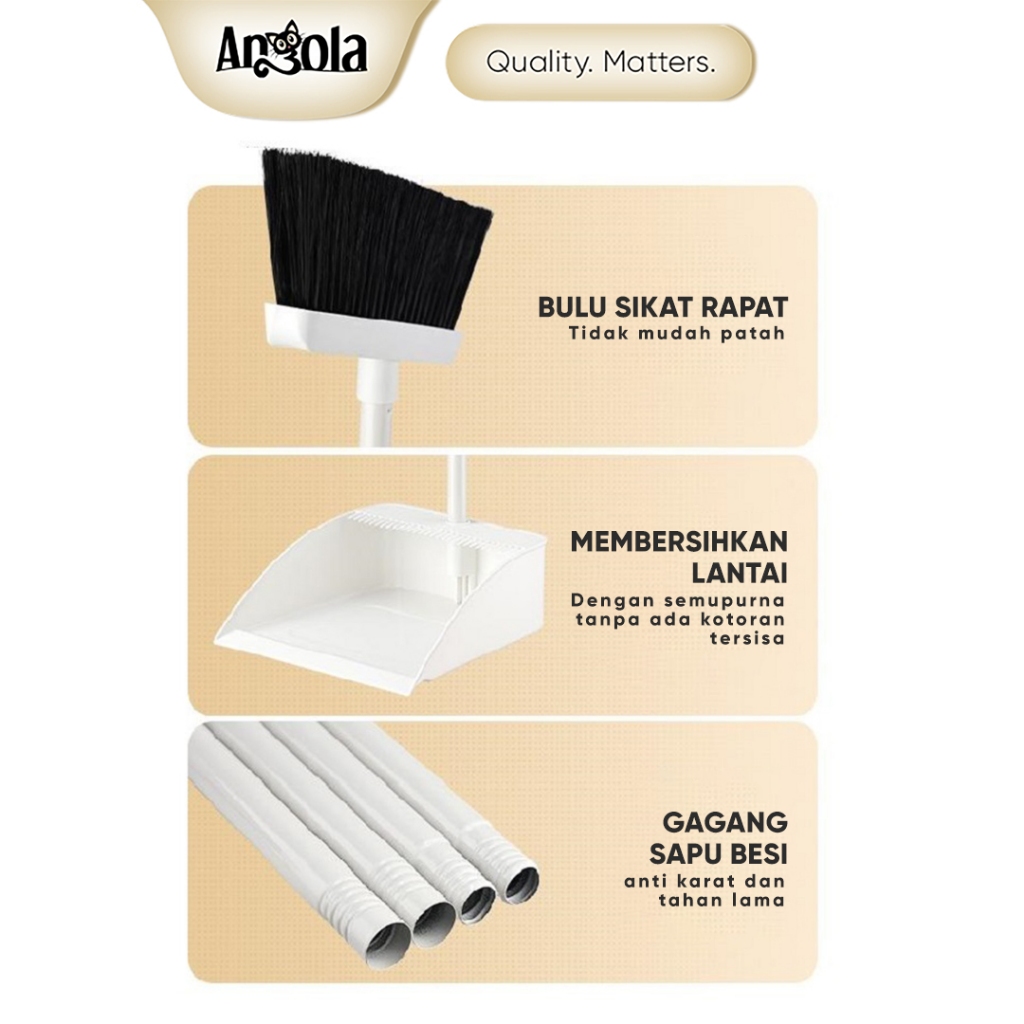 ANGOLA Sapu & Pengki Set D14 Broom Set Dustpan / Kombinasi Sapu Pengki / Alat Pembersih Lantai 2IN1