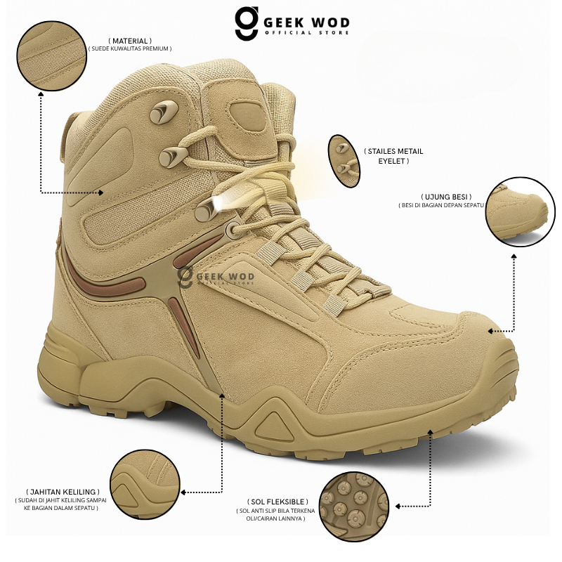 Sepatu Safety Pria Boots DLT Cordura 5AA Sepatu Tactical Gurun Boot Bikers Ujung Besi Sepatu Gunung Pria Outdoor Trackin