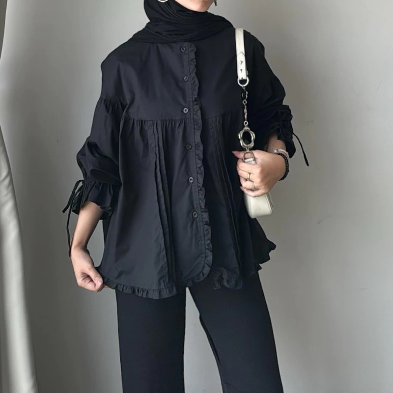 CALAYA KEMEJA WANITA REMPEL TALI POLO LINEN