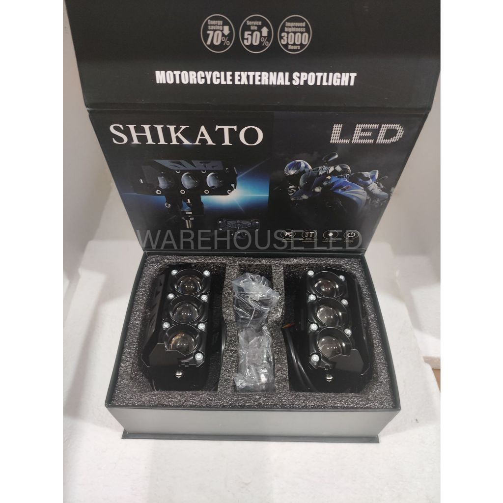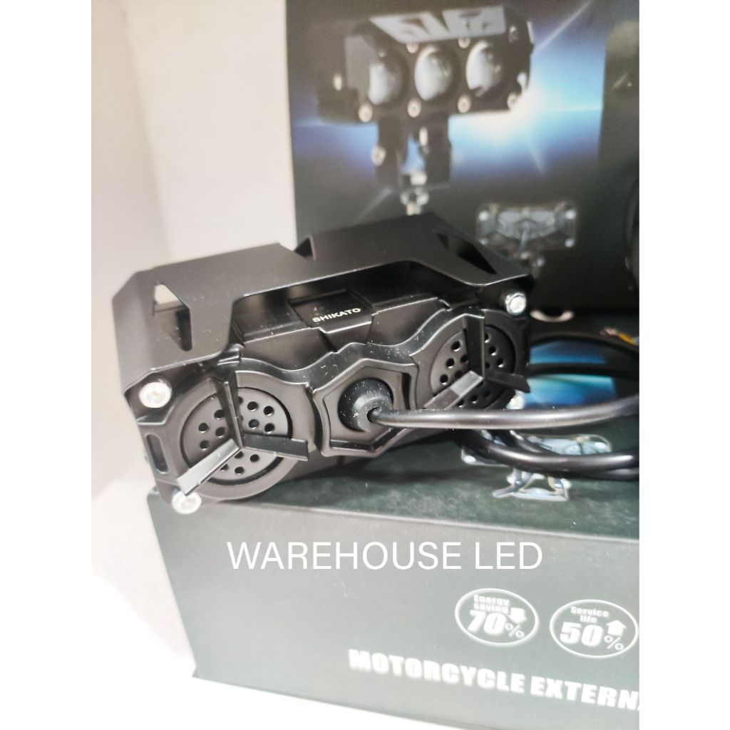1SET LAMPU TEMBAK SOROT SQL 3 MATA LED LASER GUN KIPAS 2WARNA KUNING-PUTIH 12/24V UNIVERSAL