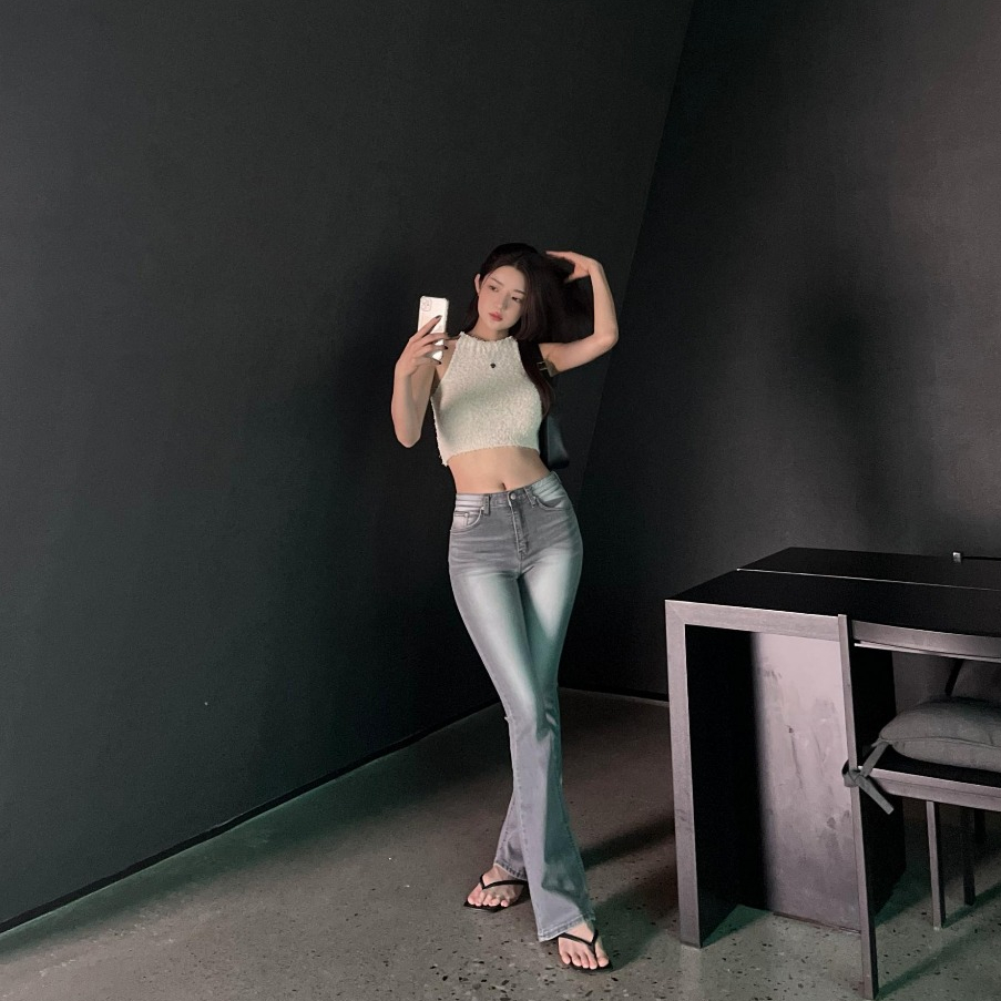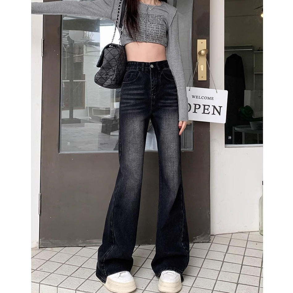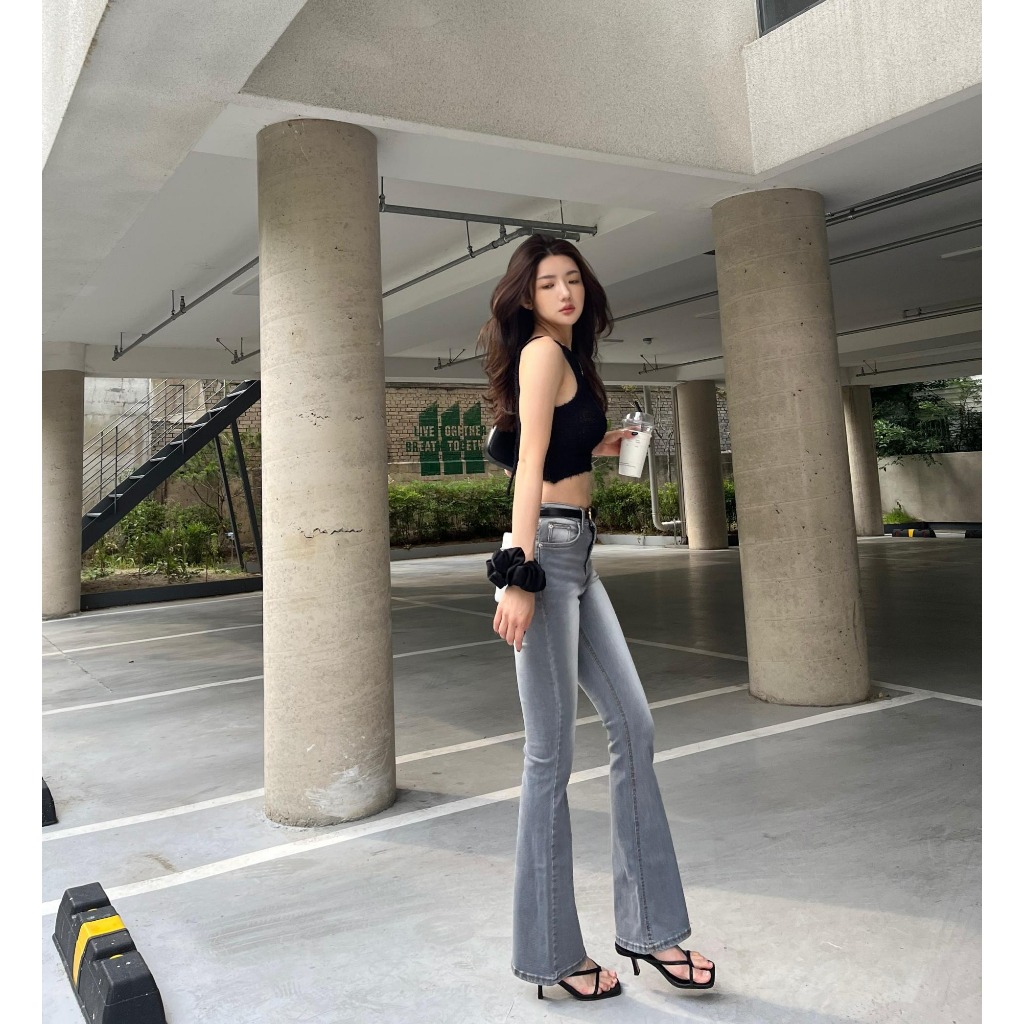 Highwaist Cutbray Jeans Retro 114 - Celana Jeans Wanita Cutbray Non Stretch Grey Whisker Premium