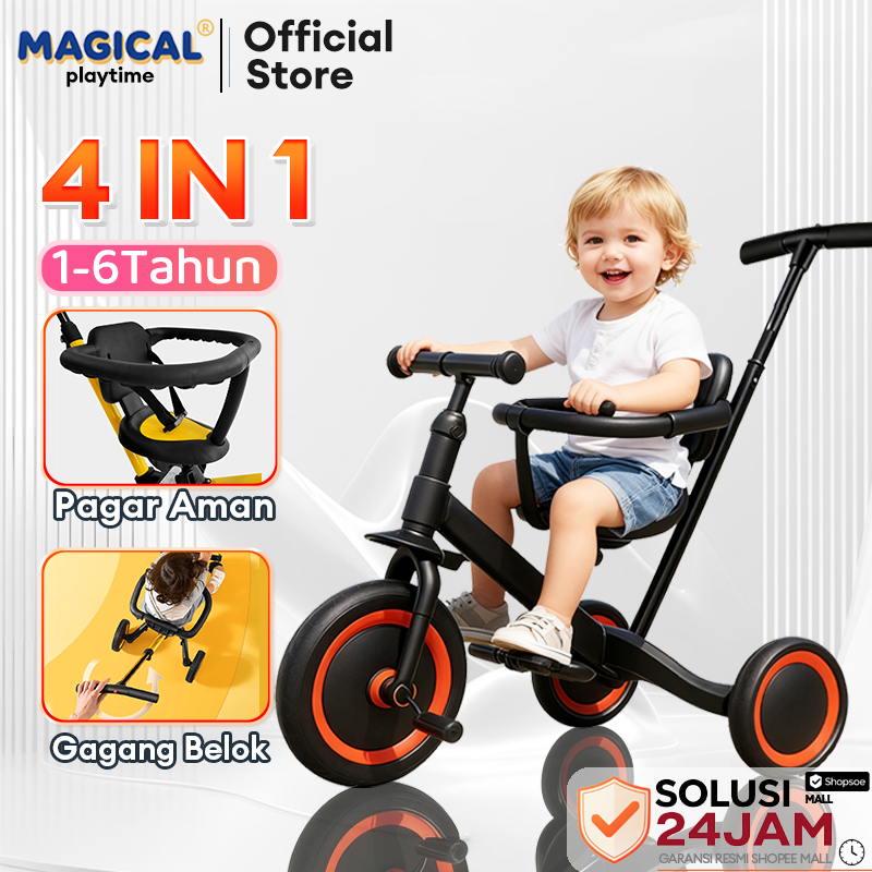 Sepeda Anak Roda 3 4in1 Balance Bike & Push Bike Keseimbangan Usia 1-6 Tahun Aman
