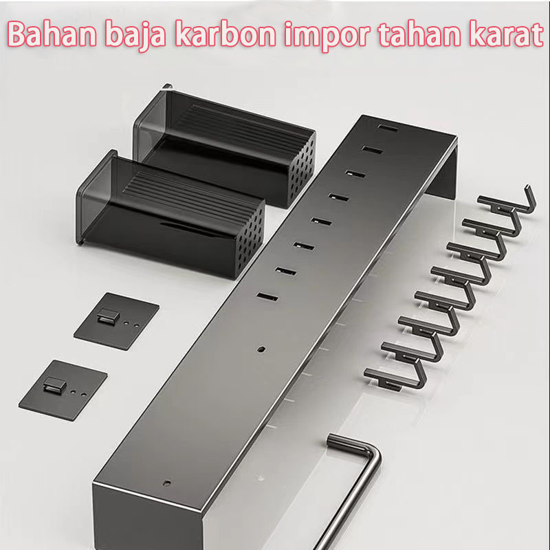Rak p1sau dinding Dapur Stainless Steel Rak Gantung Dapur Multifungsi Rak Tempel Tanpa Bor/Rak sendok Garpu Gantung Dapu
