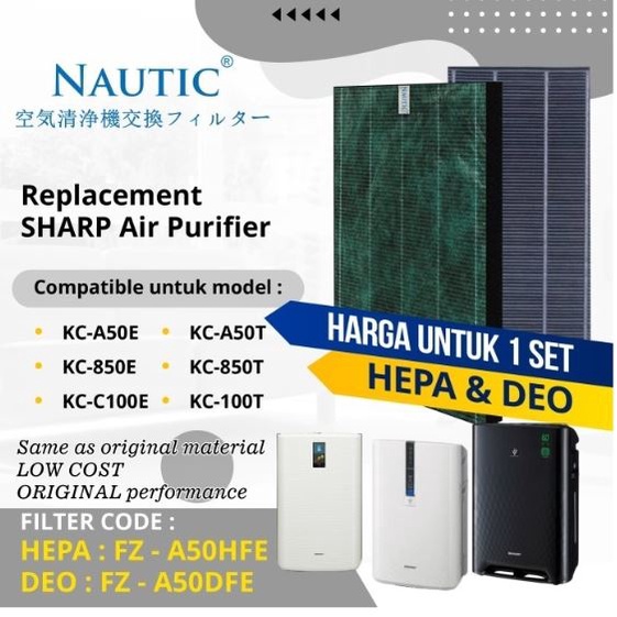 NAUTIC - Filter HEPA + DEO Compatible for SHARP FZ-A50HFE Buat KC-A50E /T KC-850E /T KC-C100E /T