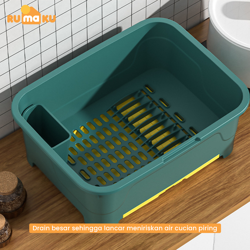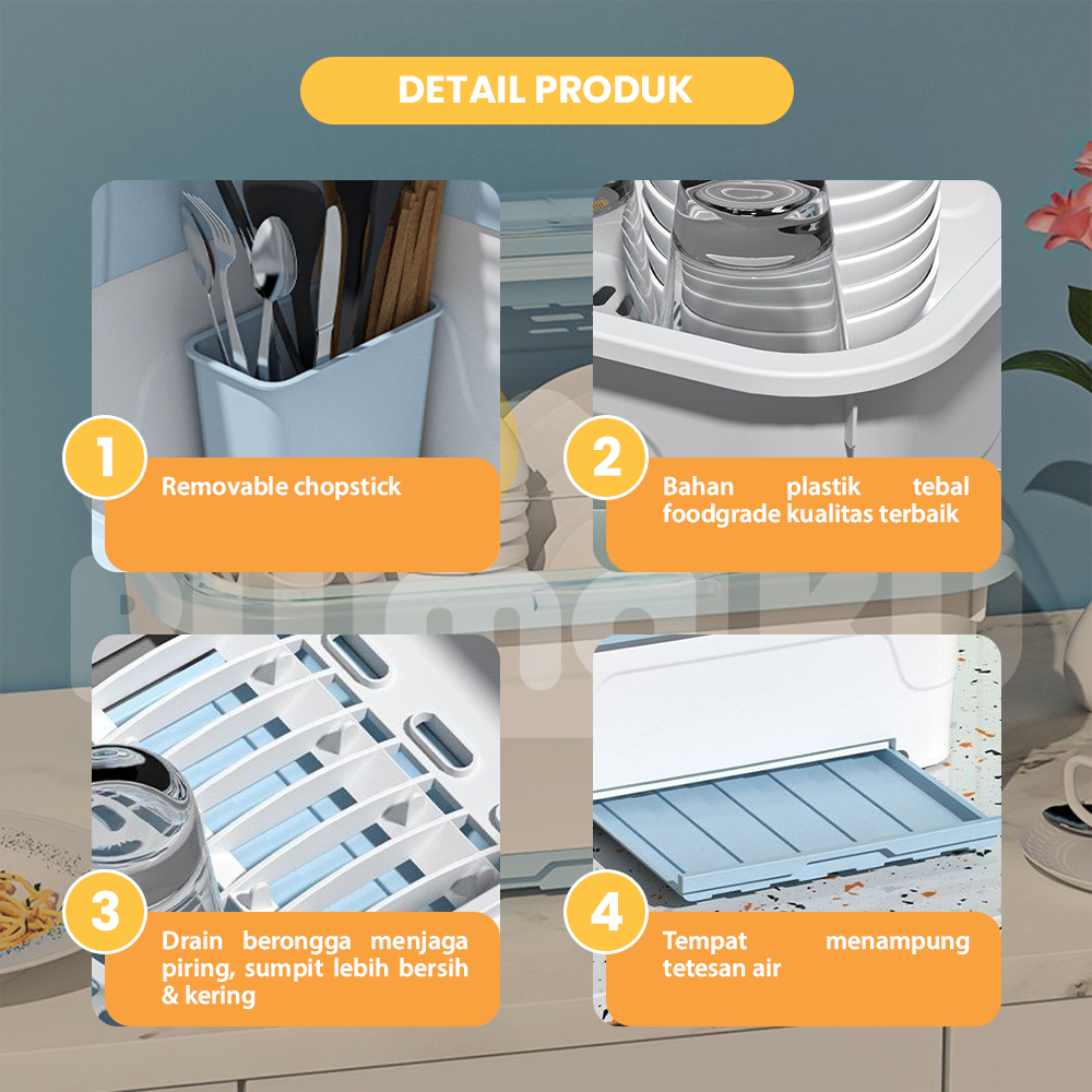 Rumaku Rak Piring Dengan Tirisan Air Rak Dapur Multifungsi Tempat Penyimpanan Alat Makan Piring Mangkuk Sendok Sumpit Ga