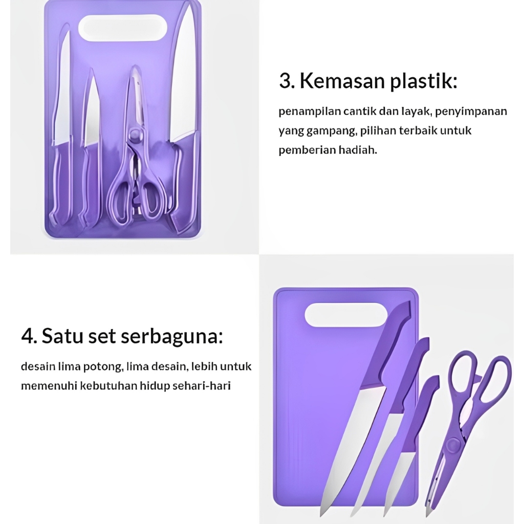 p1sau Dapur Set Talenan 5in1 Set / Set p1sau Dapur Lengkap Plus Talenan Knife Set