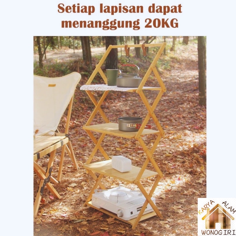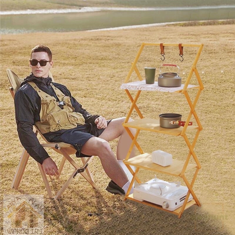 Rak lipat luar penyimpanan Camping Piknik ruangan Rak Lipat lipat kayu 3 dan 4 susun Lapisan Portabel Rak Sepatu Rak lip