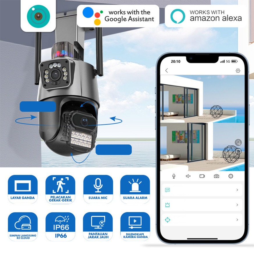 Sonix IP Camera SCM01 CCTV 8MP 4K Dual Lens Outdoor Kamera Wifi Outdoor Waterproof Auto Tracking 360 Derajat Camera HP J