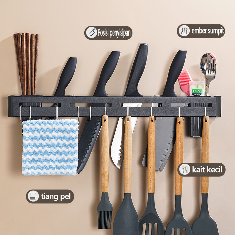 Rak p1sau dinding Dapur Stainless Steel Rak Gantung Dapur Multifungsi Rak Tempel Tanpa Bor/Rak sendok Garpu Gantung 2.Ra