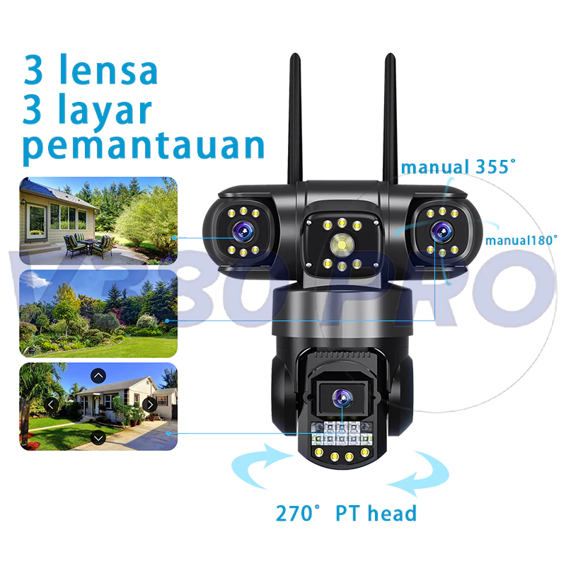 V380 Pro CCTV Outdoor 15MP 3 Lens Security Camera wifi/4G jarak jauh lewat hp 360° PTZ Kamera Deteksi gerakan Two Way Au
