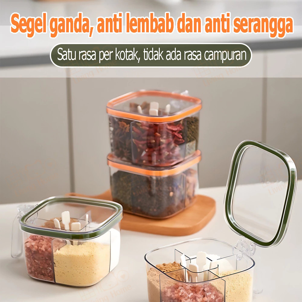 Wadah Bumbu Dapur 4 In 1 Aesthetic Kotak Plastik Penyimpanan Kedap Free Sendok 4 Sekat