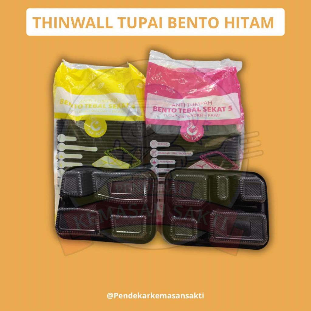 Thinwall Bento Tupai Hitam / Box Bento / Sekat 4 / Sekat 5 isi 25 pcs