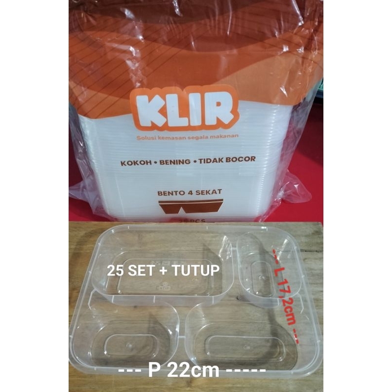 THINWALL BENTO SEKAT 4 / KOTAK BENING 4 SEKAT + TUTUP ISI 25 SET