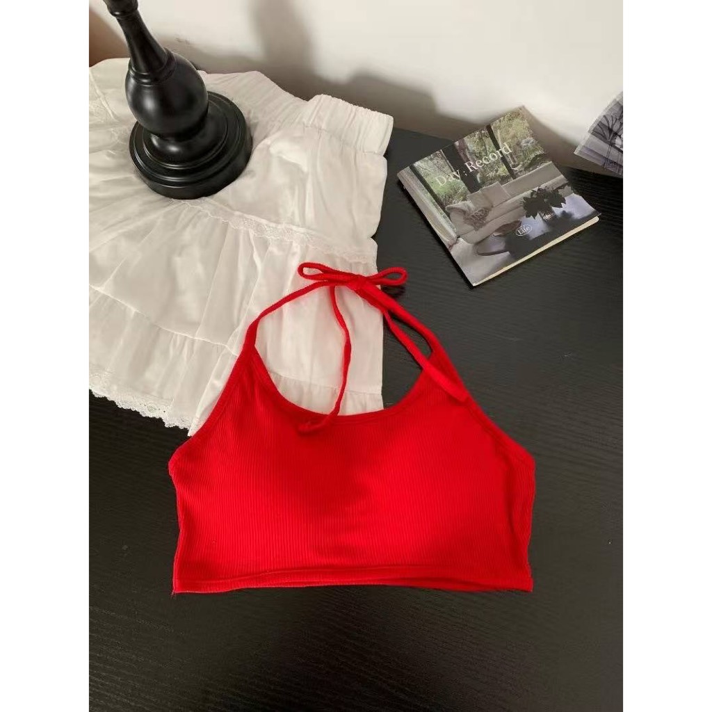 Miss Tank Top Halter Wanita Sexy Baru dengan Bra Pad, Gaya Liburan Manis & Seksi, Atasan Dalaman