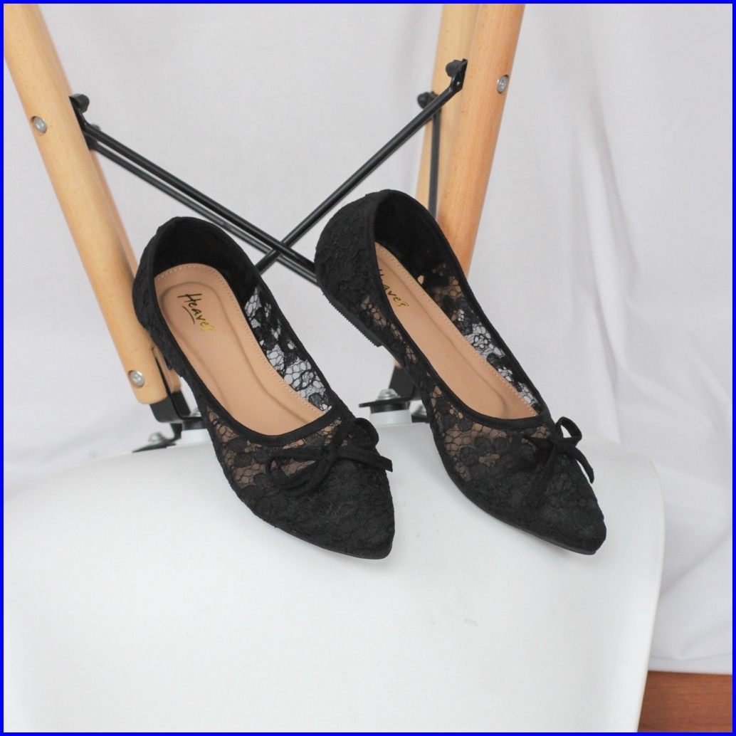 Heaves - Flat Shoes Wanita Daisy Black - Flat Shoes Wanita Premium