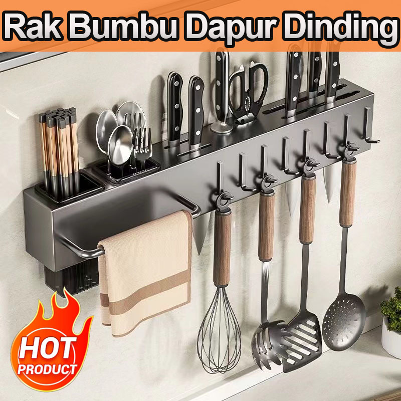 Rak p1sau dinding Dapur Stainless Steel Rak Gantung Dapur Multifungsi Rak Tempel Tanpa Bor/Rak sendok Garpu Gantung Dapu