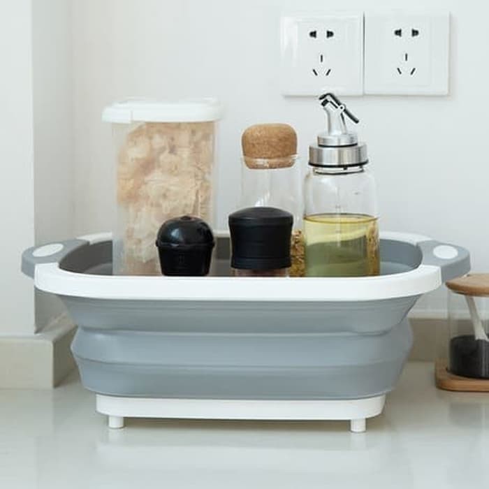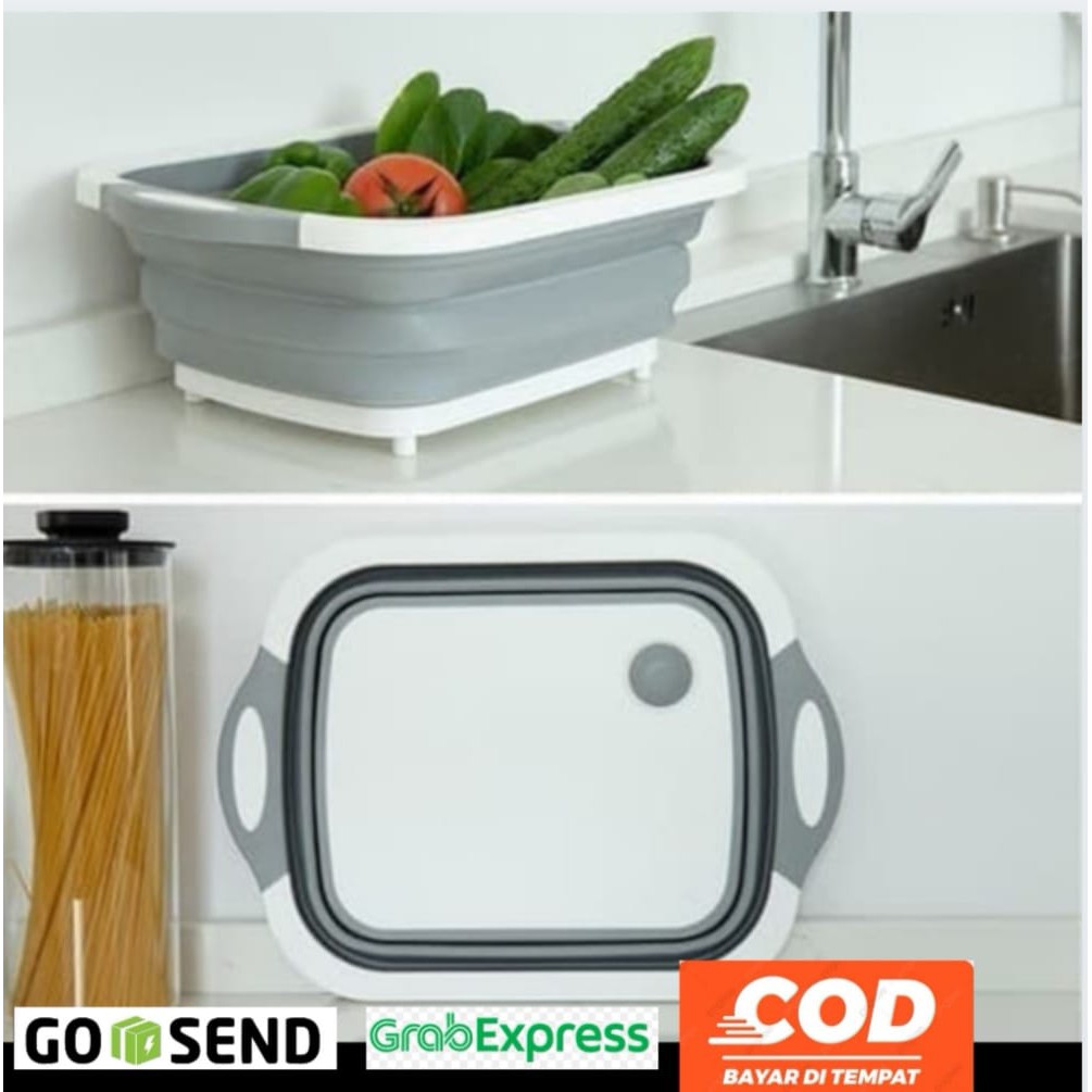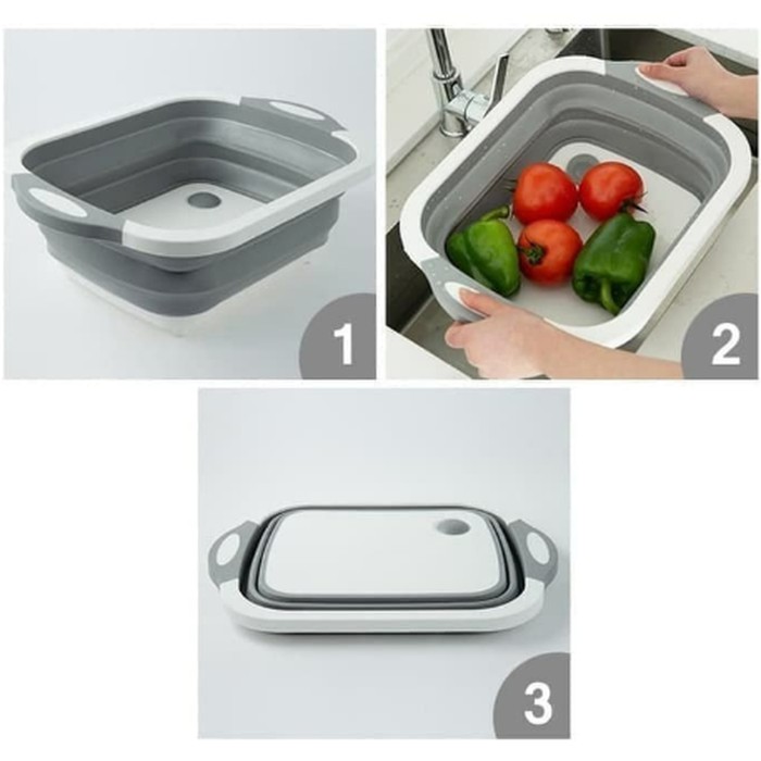 Talenan Lipat + Baskom Wadah Cucian Sayur Peralatan Dapur Serbaguna - Putih