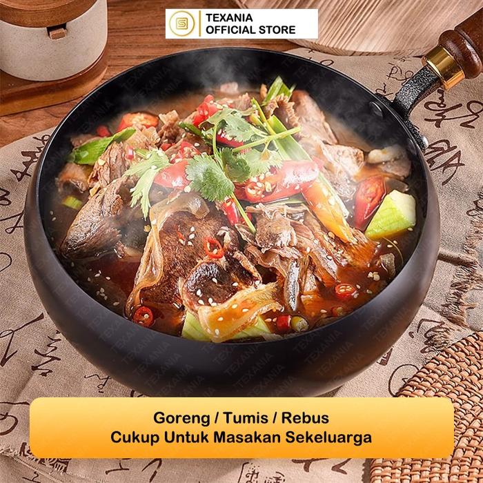 GMA TEXANIA Panci Carbon Steel Pot Anti Lengket Anti Gores Carbon 24cm Free Tutup Kayu Kitchenware