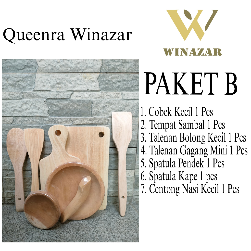 Queenra WInazar - Paket B Paket Hemat Peralatan Masak Lengkap (Cobek, Talenan, Tempat Sambal, Spatula, Centong)
