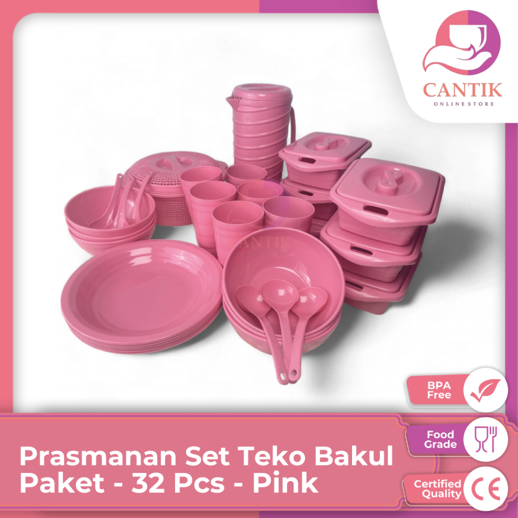 Paket Set Prasmanan Lengkap isi 32 pcs (6 Basi Mini + 6 Piring Makan+ 6 Mangkok Sedang+ 6 Gelas Ulir + 1 Teko ulir + 1 B