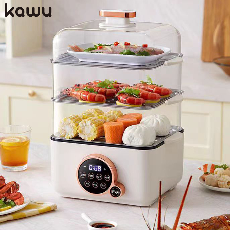 Kawau Electric Steamer Multi functional Electric Steamer 3-layer Beige Egg Food Steamer 24L 3-layer Electric Steamer Sui