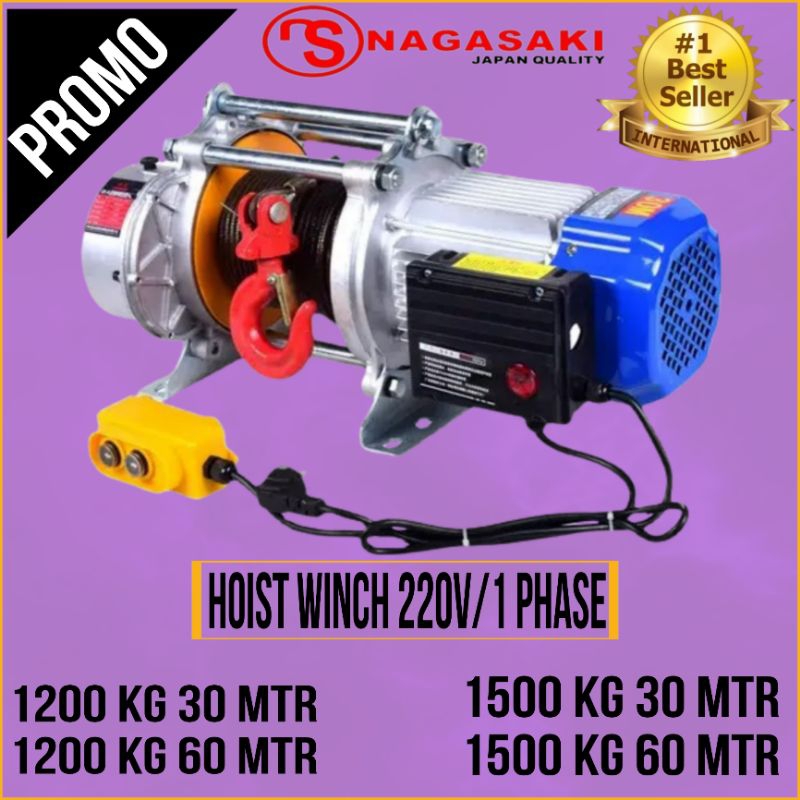 ELECTRIK HOIST WINCH 1500 KG × 30 MTR 220V/1 PHASE NAGASAKI JAPAN QUALITY + KATROL 1 TON