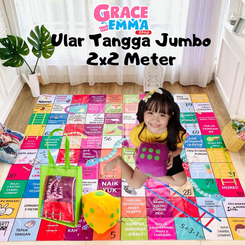 ULAR TANGGA JUMBO MAINAN EDUKASI ANAK FREE BANTAL DADU / ULAR TANGGA 2X2M / FULL COLOUR