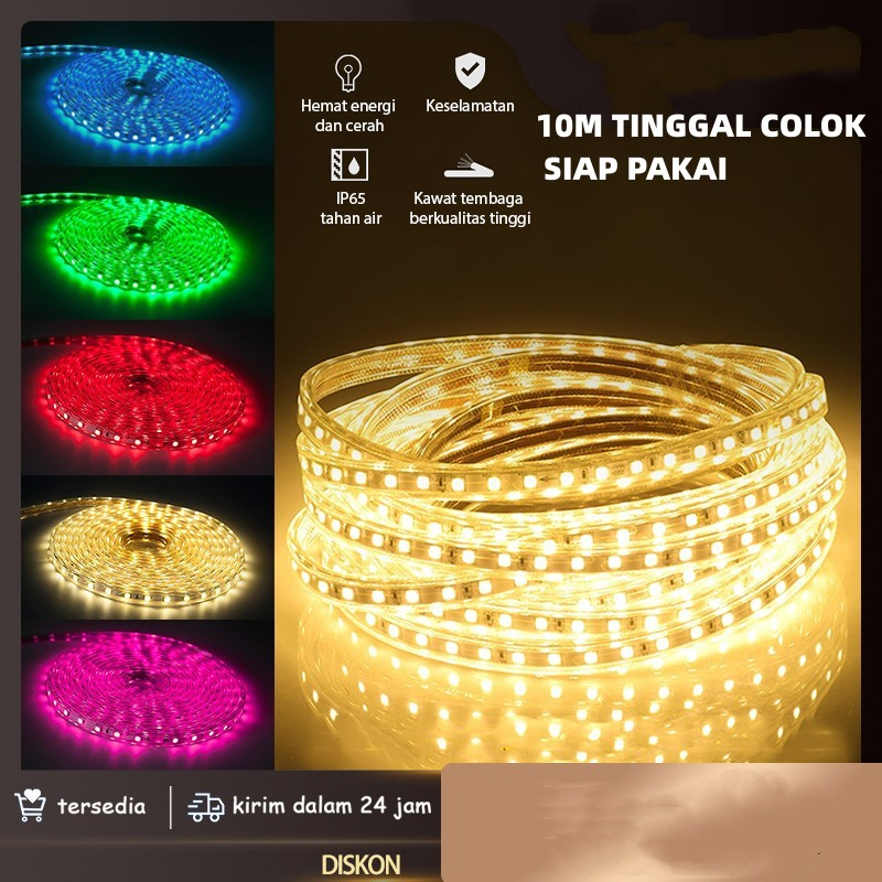 PAKET LAMPU LED STRIP SELANG 5050 SMD AC 220V 10METER Tinggal Colok