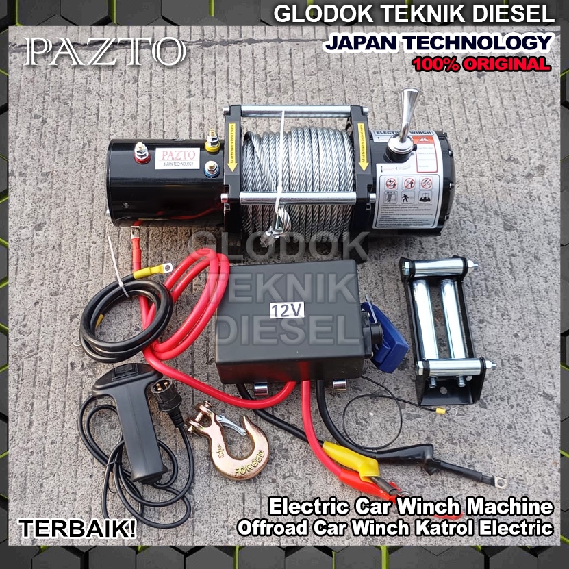 Electric Car Towing Wire Rope Winch Hoist 9500 Lbs x 30 & 26 meter 12 Volt Heavy Duty HD 1 phase Tali Derek Mobil Motor