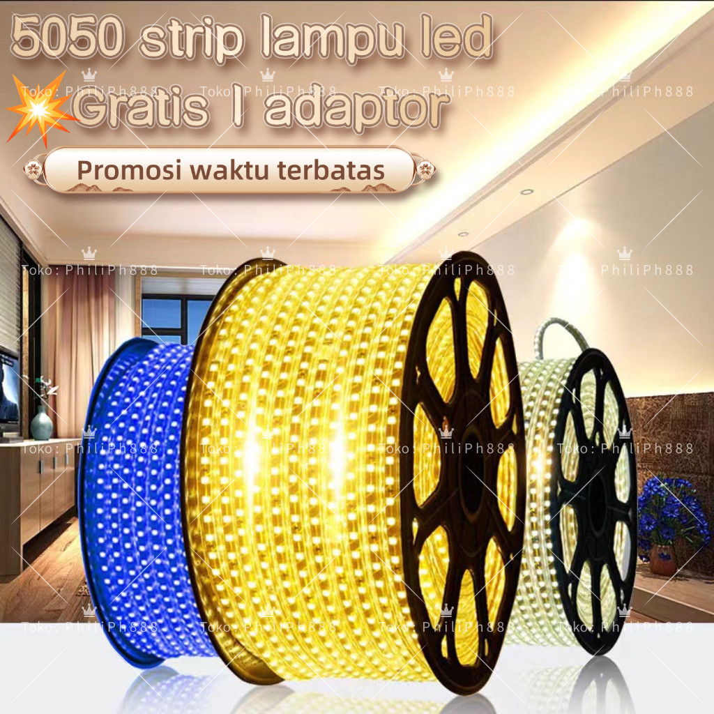 【Harga khusus 10 meter】Strip lampu hias LED hemat energi 5050 3M 10 meter (strip lampu + soket) lampu kamar aesthetic de