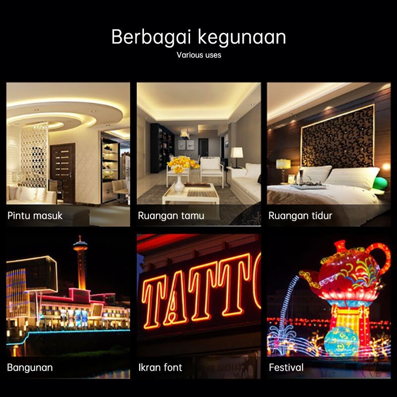 Paket Lampu LED Neon Flex AC 220V Lengkap Tinggal Colok Langsung Nyala Lampu Dekorasi Kamar Estetik