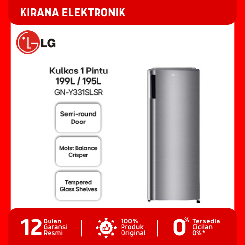LG KULKAS 1 PINTU 199L SMART INVERTER BIG VEGETABLE BOX GN-Y331SLSR LEMARI ES KAPASITAS BESAR LOW WATT ORIGINAL