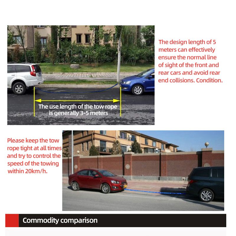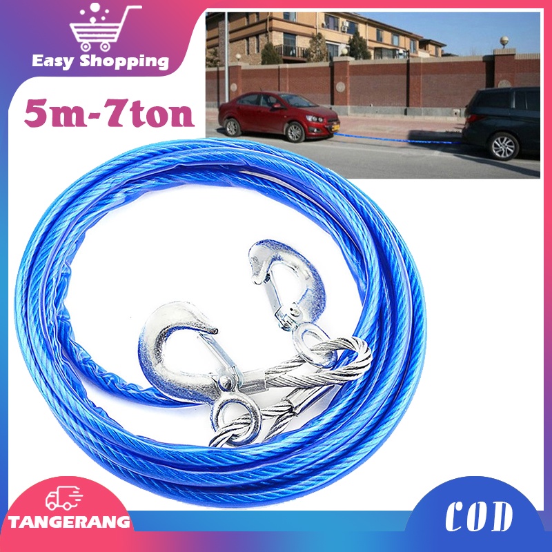 7 Ton Tali Derek Mobil 5 M Tali Penarik Mobil Kawat Sling Baja Hook Emergency Tow Rope