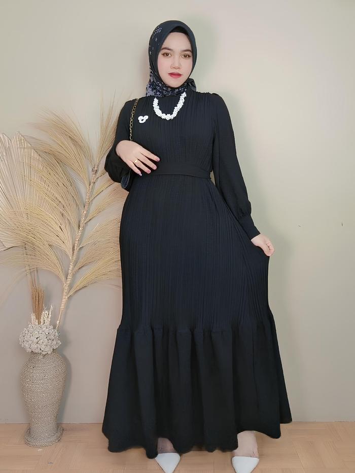 DRESS KONDANGAN ANESA PLISKET BAHAN CRINKLE PREMIUM PESTA - MAROON, ALL SIZE ( BB 50 - 80 KG )