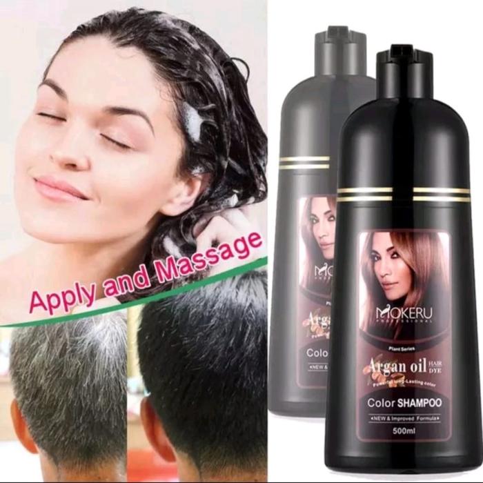 Shampo pewarna rambut Argan oli Mokeru 500ML /Shampo semir rambut hitam Cat - Light brown