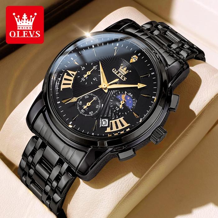OLEVS Jam Tangan Pria Anti Air Cowok Original Chronograph 2025 Tahan Led Sport Stainless Steel Men