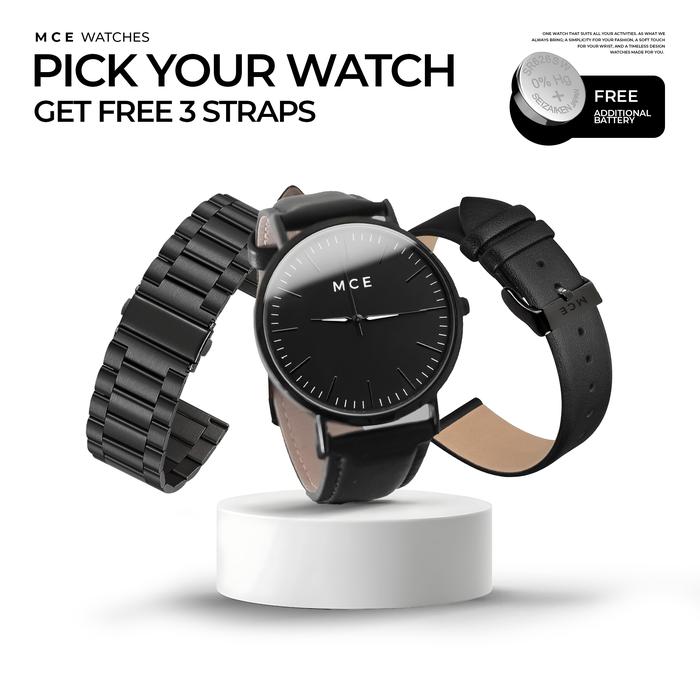 MCEWATCHES 1 Jam Gratis 3 Strap Jam Tangan Pria Special Hadiah dan Kado