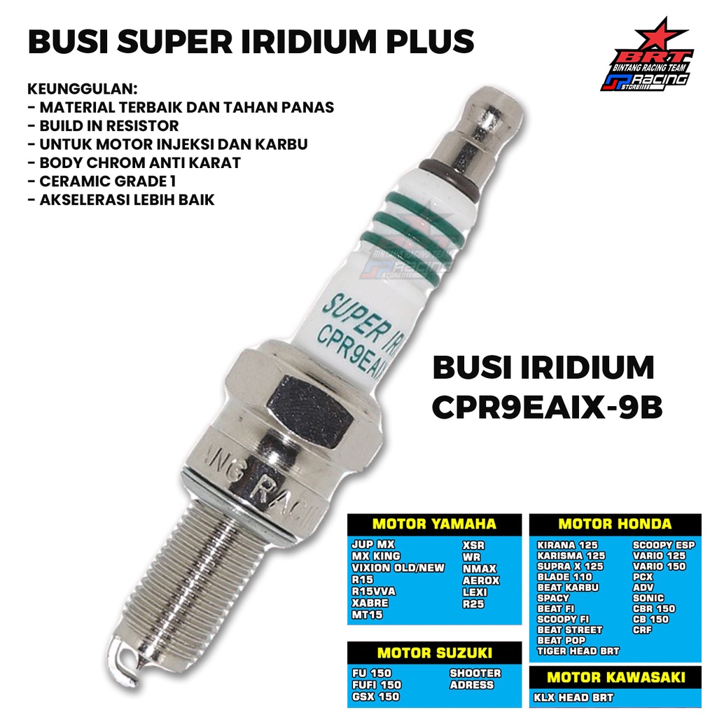 Busi Racing Iridium BRT Vario/ADV/Beat/Scoopy/Sonic/CRF/Aerox/MX King/R 15/GSX/FU FI- CPR9EAIX-9B