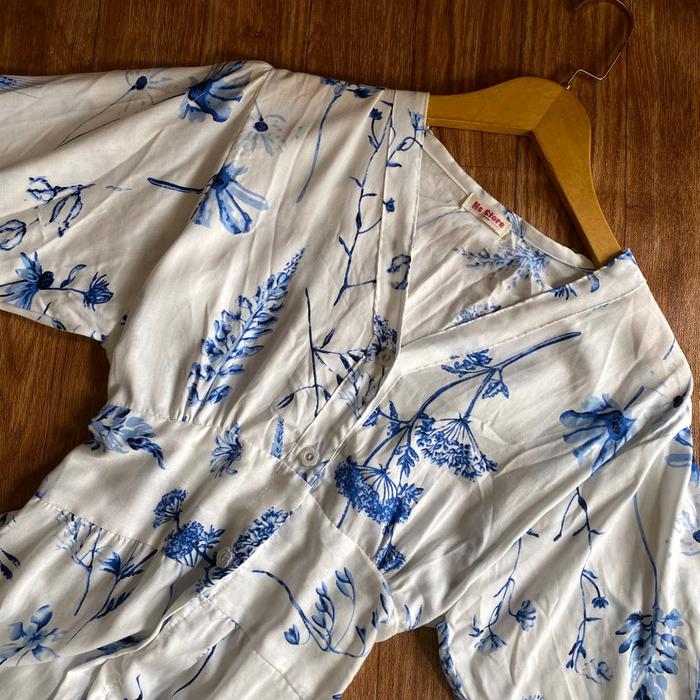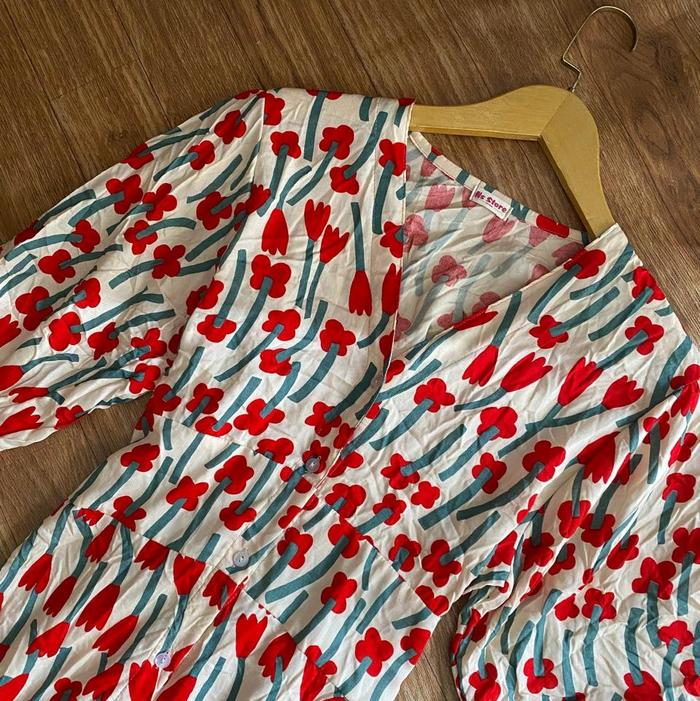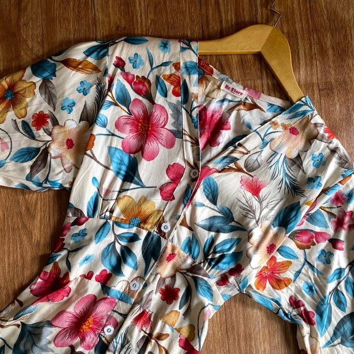 GAUN DEWASA NAOMI DRESS RAYON MOTIF BUNGA - WANITA - CASUAL - MERAH, ALL SIZE LD 110 CM PB 135
