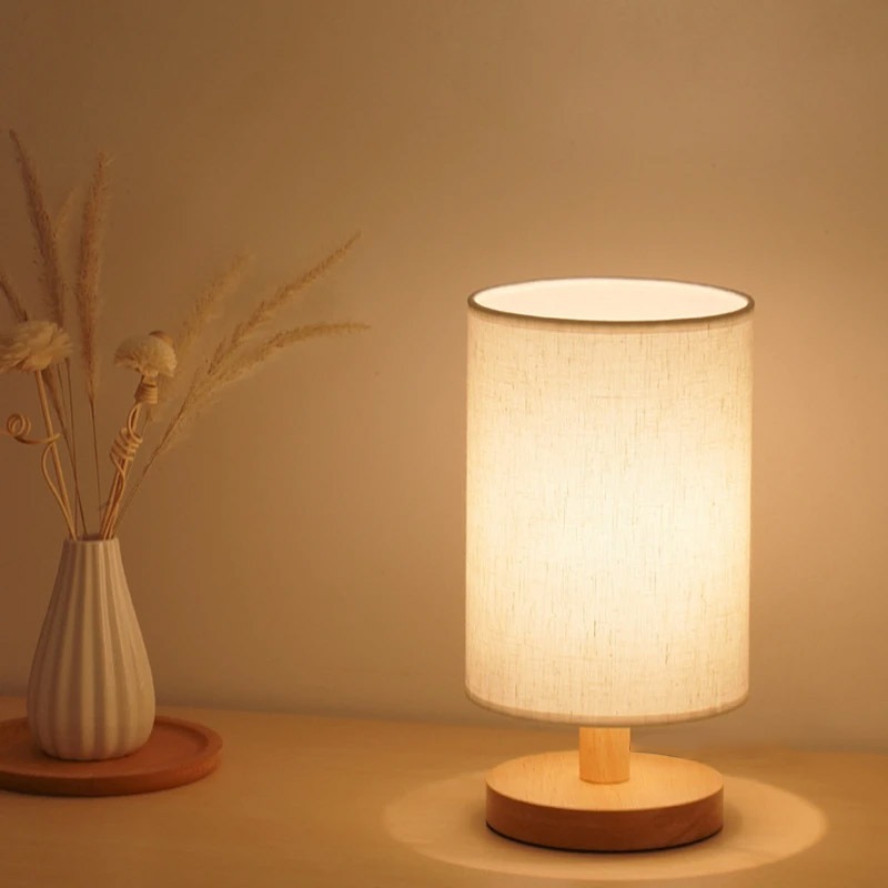 Lampu Meja Led e Control 3 Color Lampu Wood Meja Hias Kain LED Lampu Vintage Gaya Jepang Lampu